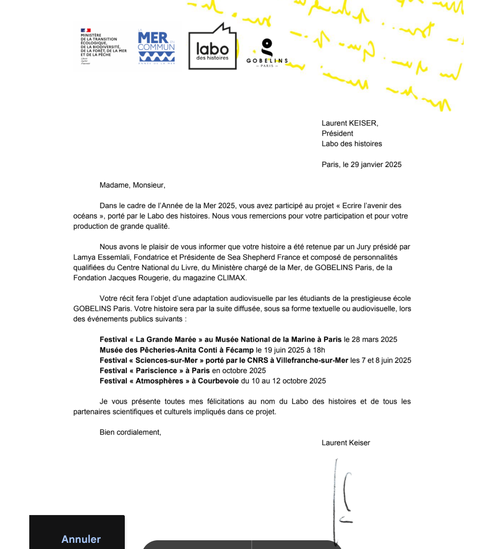 ✅ "L’aqua-peine" sera présentée au Festival La Grande Marée à Paris, au Musée des Pêcheries - Anita Conti à Fécamp, au Festival Pariscience à Paris, et diffusée sur le site du Ministère de la Mer ! 🌍